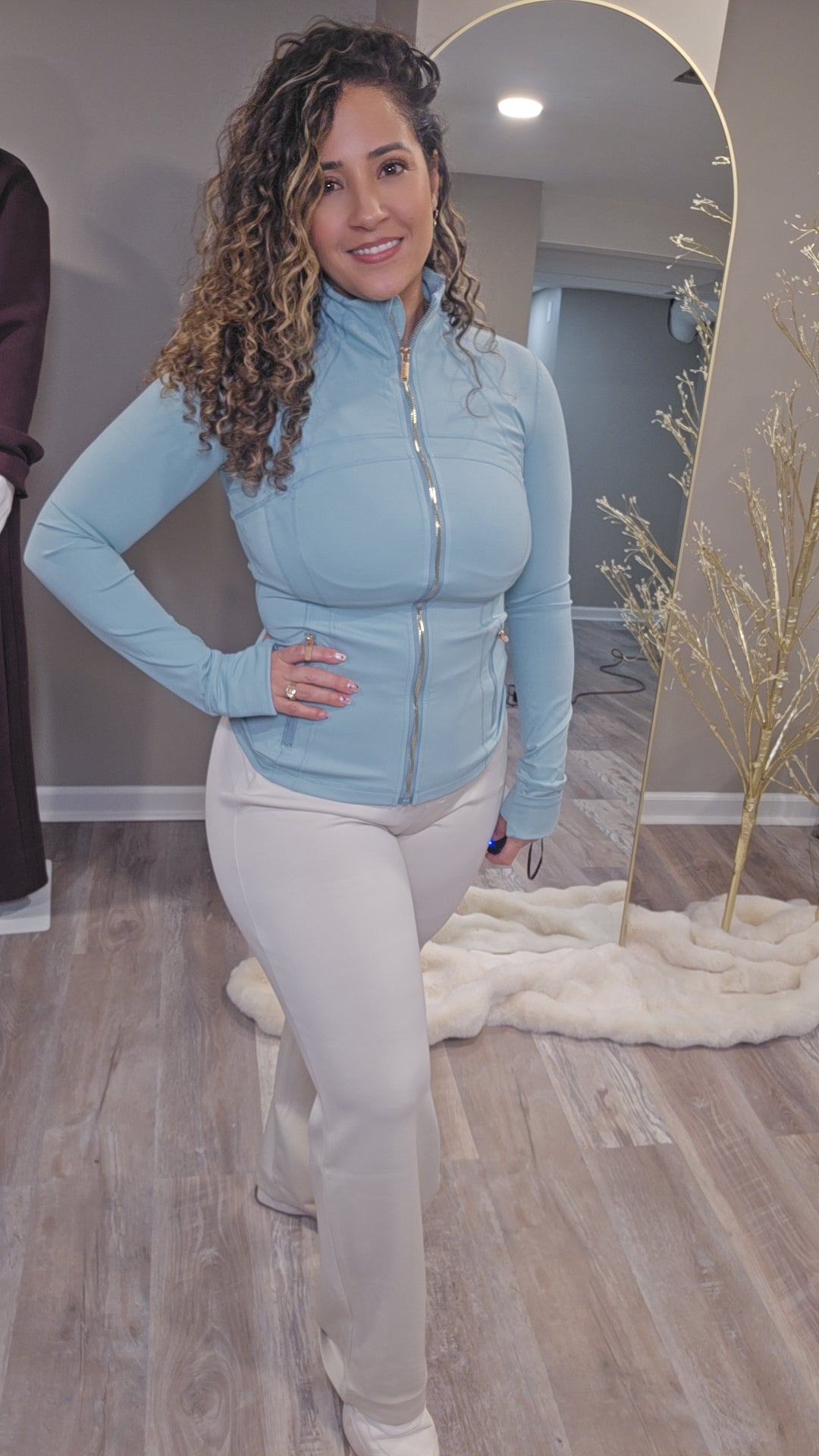 Beige Stretch Knit Straight-Leg Pull-On Pant
