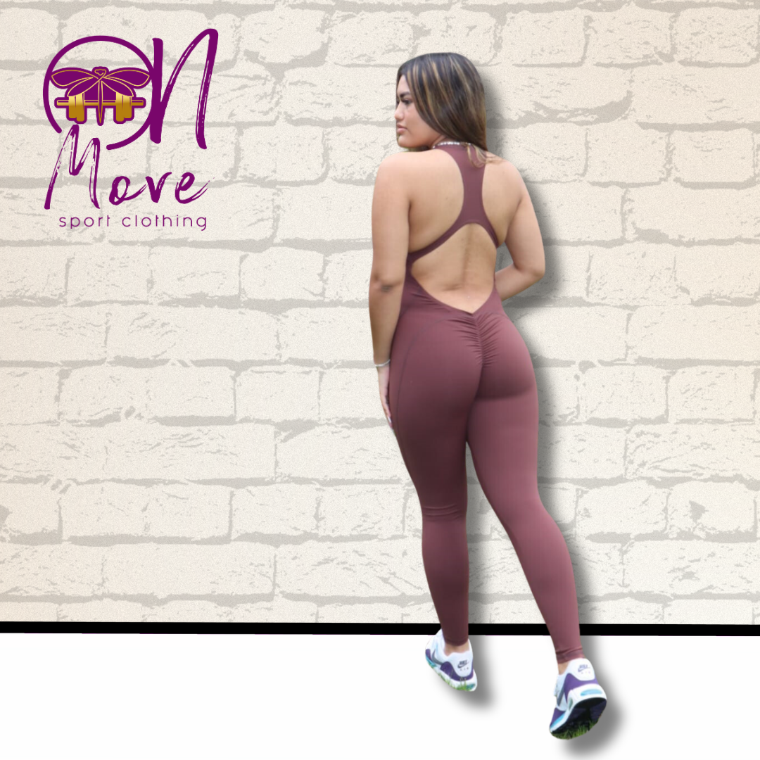 Brown Sleeveless Zipper Scrunch Butt Jumpsuit