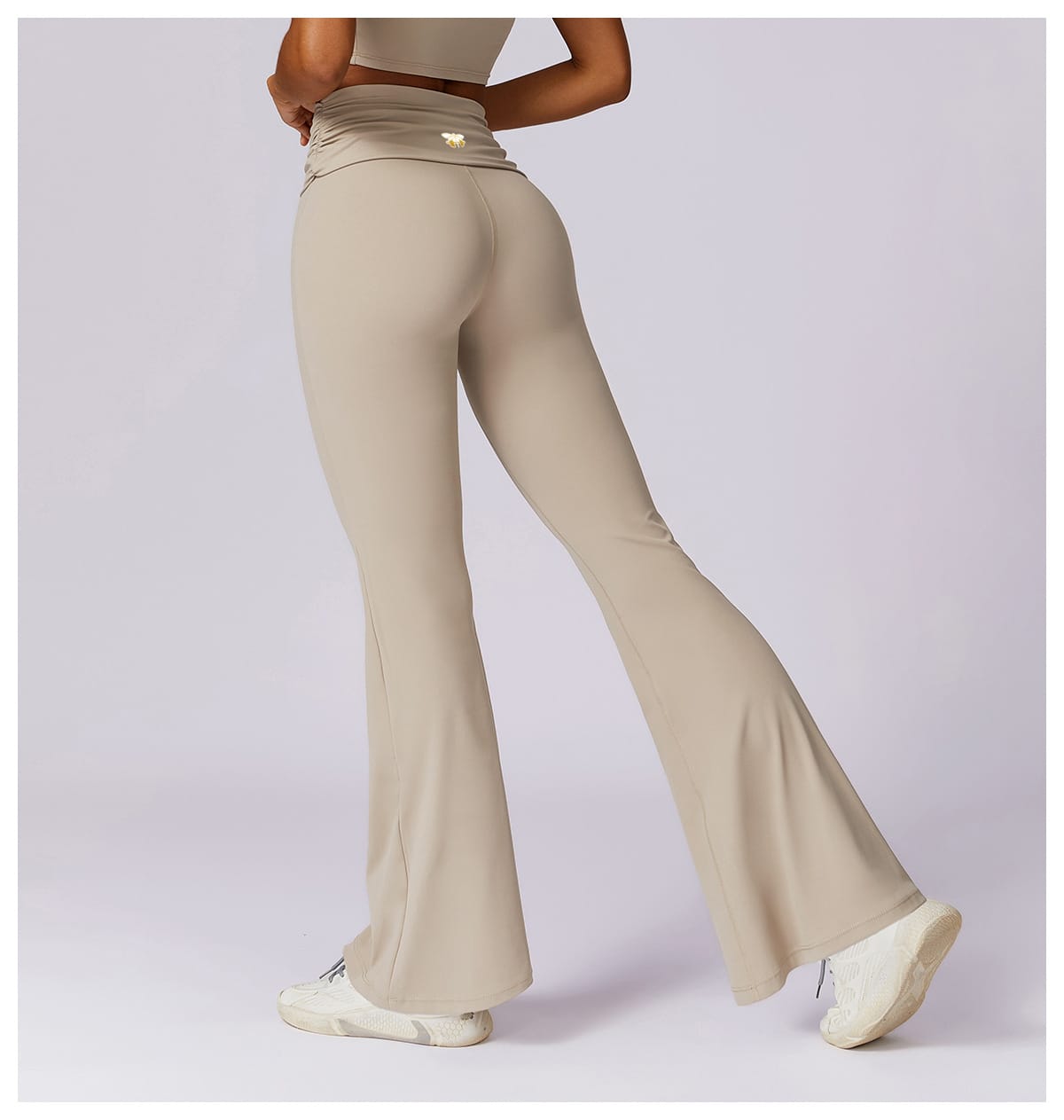 Khaki Asymmetric Fold-Over Waistband Flare Leggings