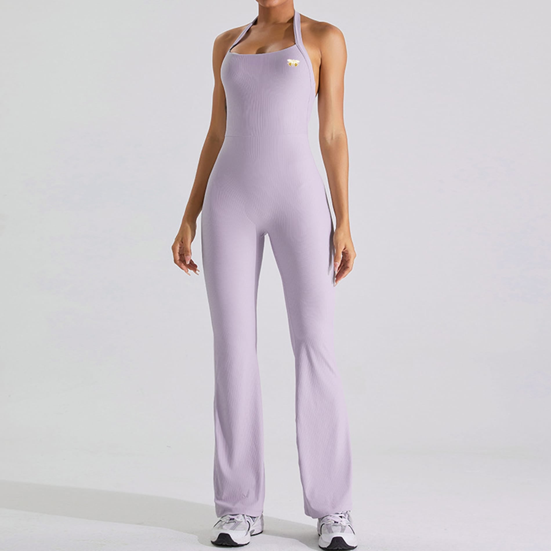 Lavender Halterneck Flare Jumpsuit