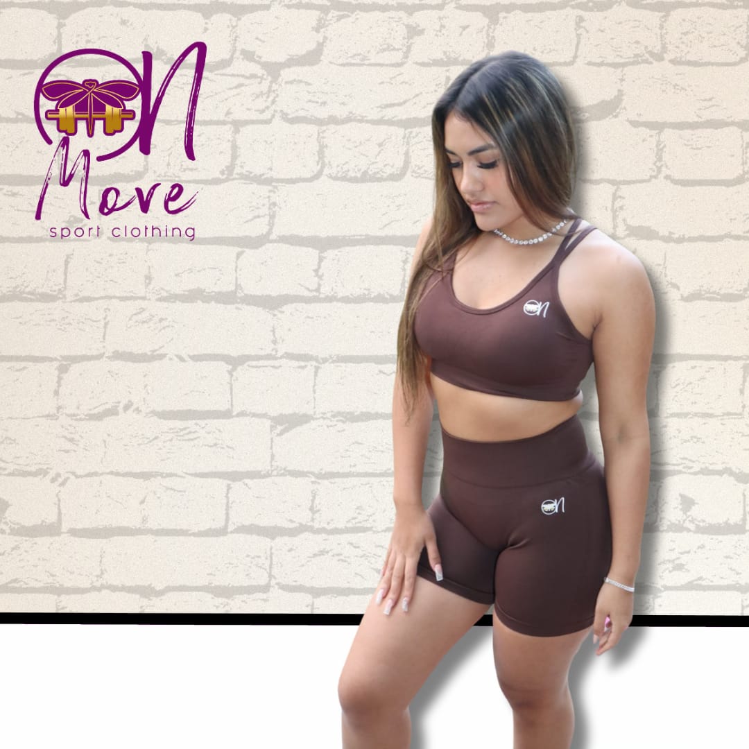Brown Set of Laced Strap and Contour Scrunch Short